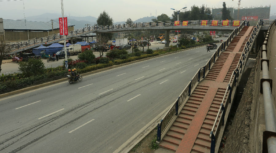 蓮莊路三期人行天橋位于蓮莊路三期工程k+737樁號(hào)處,跨越蓮莊路,連接龍鋼生活區(qū)及龍鋼市場(chǎng)、龍鋼幼兒園。保證該處居民的出行方便及安全。