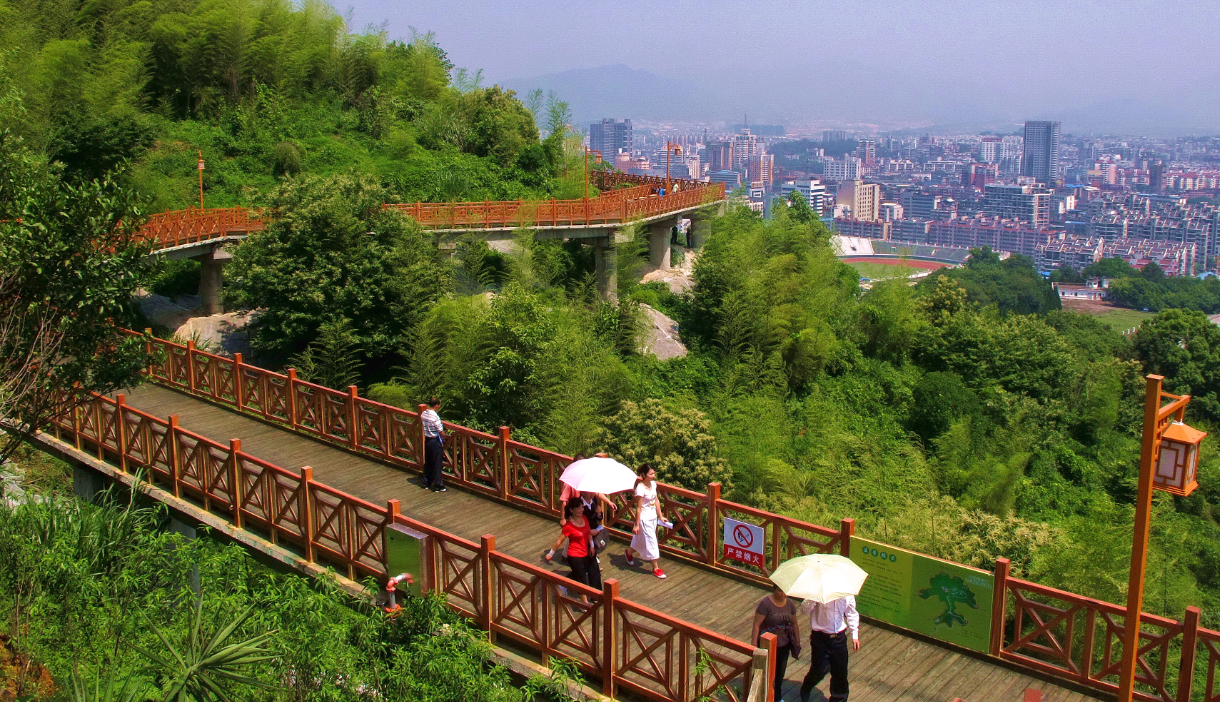 蓮花山底南環(huán)路地面標(biāo)高為330米,山頂標(biāo)高為490.606米,山高160米左右,山頂已開發(fā)為休閑場所,并建有世紀(jì)鐘樓,山腳可挖掘的景點(diǎn)不多,因此決定在半山腰開辟一條市民休閑的木棧道,將公園增加一個休閑觀光的好場所,并可成為蓮花山一道亮麗的風(fēng)景線。因此在半山腰422米高程建設(shè)一條環(huán)山的木棧道。為盡量少破壞山體植被,木棧道采用棧道橋形式,全長3781.88米,全寬3.5米(包括欄桿寬度),凈寬3.0米,蓮花山棧道橋工程總投資7610萬元。