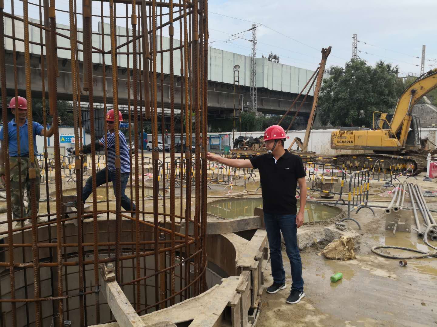427日,在龍巖火車站片區(qū)路網(wǎng)項(xiàng)目工地,犀牛路二期正在進(jìn)行樁基、承臺(tái)和立柱施工,站前高架橋正在進(jìn)行墩柱和混凝土現(xiàn)澆梁施工,一派熱火朝天的建設(shè)場(chǎng)景,39歲的龍巖國(guó)資企業(yè)干部孔華剛剛榮膺2018年“福建省勞動(dòng)模范”,從福州開完表彰會(huì)載譽(yù)歸來的顧不上休息,馬不停蹄地深入站前高架橋和犀牛路二期項(xiàng)目一線,檢查安全文明施工情況,督促項(xiàng)目施工進(jìn)度。