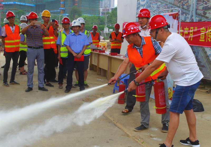6月16日是“全國安全生產(chǎn)宣傳咨詢?nèi)铡?。?dāng)日,龍巖城發(fā)集團與市城投公司組織人員分別前往中心城區(qū)華蓮西路一期、火車站站前高架橋、龍巖大橋高架橋、龍巖大道四期下穿工業(yè)路通道等四個項目工地,開展安全生產(chǎn)宣傳活動。圖為工作人員現(xiàn)場指導(dǎo)工人使用滅火器。