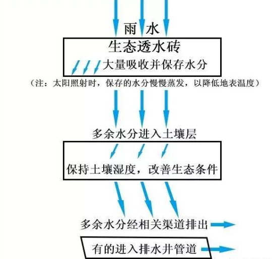 什么是海綿城市?簡言之,就是城市像海綿一樣有彈性,能吸水、蓄水、排水,實現(xiàn)水循環(huán)利用、有效防內(nèi)澇。鋪設(shè)生態(tài)透水磚,是除雨污分流改造外,我市海綿城市建設(shè)的一個重點和亮點。鋪有生態(tài)透水磚的人行道,看上去好像與鋪設(shè)普通磚的人行道沒什么兩樣,但仔細一看就會發(fā)現(xiàn)有所不同,生態(tài)透水磚表面布滿小孔,而普通磚表面比較光滑。這是因為生態(tài)透水磚以礦渣廢料、石屑、普通硅酸鹽水泥為主要原料,設(shè)計有一定孔隙率,經(jīng)高頻振動加壓而成,普通磚則主要用石粉廢渣、低標號水泥等制成。下雨時,生態(tài)透水磚能大量吸收并保存水分,達到飽和狀態(tài)后保存不了的多余水分則透過磚體進入土壤層,從土壤層出來后的多余水分最后經(jīng)相關(guān)渠道排出,有的通過排水井管道排出。而普通磚只能吸收少量水分,大部分水經(jīng)由地表流掉,易導(dǎo)致路面積水。