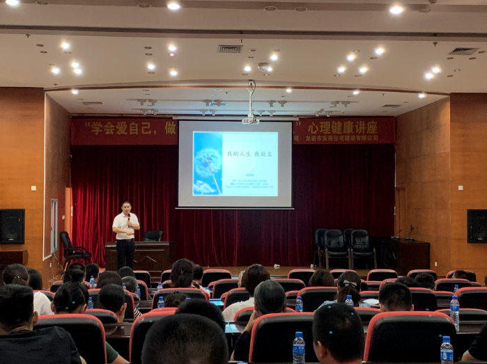 為提高全體員工心理素質(zhì),不斷提升心理健康水平,2019年9月10下午,市城公司和安居公司在建設(shè)大廈四樓第五會議室共同舉辦“學(xué)會愛自己,做個內(nèi)心強(qiáng)大而溫暖的人”心理健康知識講座,特邀請龍巖市第三醫(yī)院康復(fù)科劉主任(國家二級心理咨詢師)前來授課。