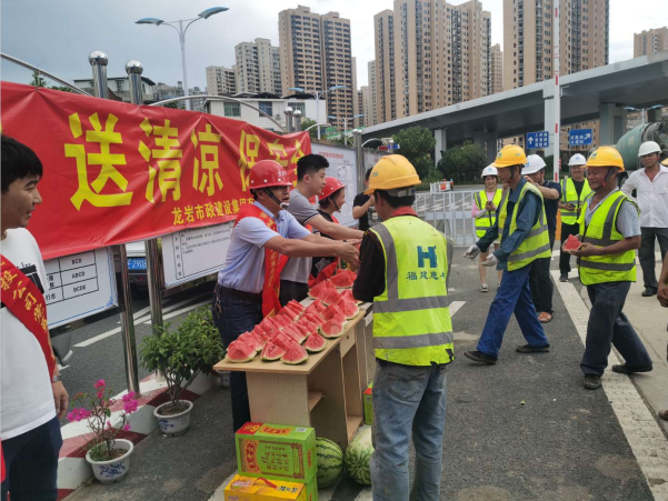 “弟兄們,來吃西瓜、喝涼茶”7月3日大中午,龍巖市政集團組織的黨員、志愿者們?yōu)槲玳g在項目現(xiàn)場暫時休息的一線工人們獻上一塊塊甘甜可口西瓜。這是該公司針對近來天氣悶熱特意為一線職工開展的“走項目、送清涼、保安全”活動。班子成員兵分幾路分別帶隊前往龍巖大橋、浮東路、羅橋節(jié)點和龍巖大道二期等重點項目,為現(xiàn)場一線的工人們發(fā)放了西瓜、王老吉和菊花茶等防暑降溫食品,對廣大在一線的員工克服天氣影響,堅守崗位認(rèn)真工作表示感謝!